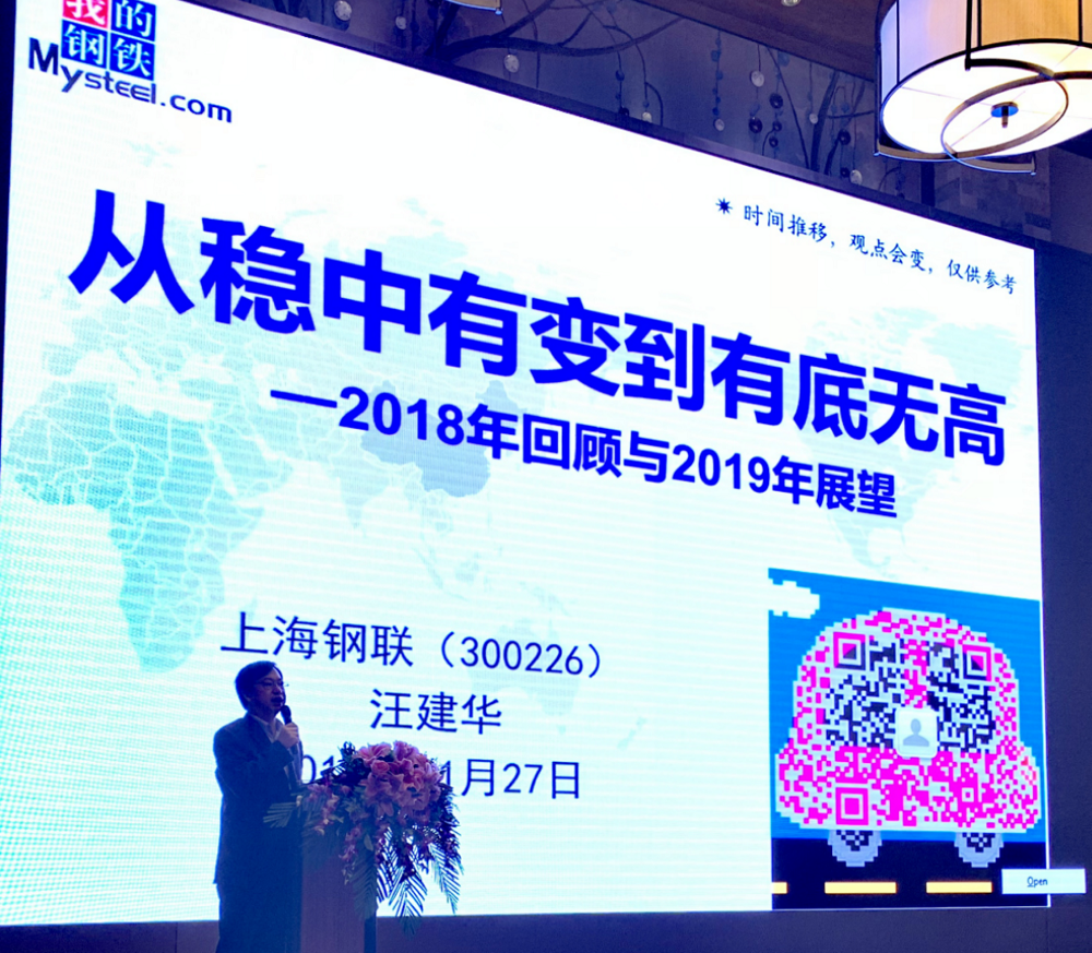 上海鋼聯(lián)首席分析師汪建華先生從供需穩(wěn)中略增、價格穩(wěn)中有漲、利潤穩(wěn)中有升、杠桿穩(wěn)中有降、效率穩(wěn)步提高、環(huán)保穩(wěn)步提高等六個方面對2018年鋼鐵市場走勢進(jìn)行回顧,并深入淺出地對2019年鋼鐵市場形勢進(jìn)行預(yù)判及原因分析,針對鋼鐵市場現(xiàn)象提出解決對策,汪建華先生強(qiáng)調(diào),應(yīng)通過積極提高產(chǎn)業(yè)集中度/努力重購營銷關(guān)系/抓住時機(jī)布局產(chǎn)業(yè)結(jié)合等方式等高質(zhì)量發(fā)展方式。