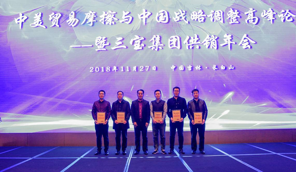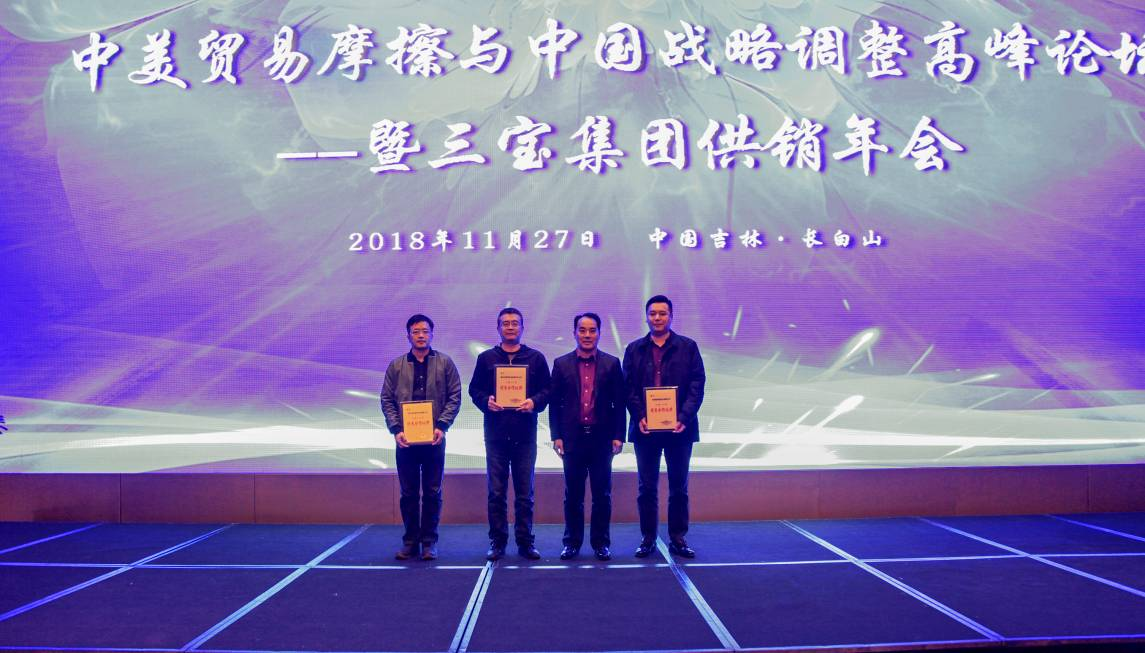 2018年11月27日,“中美貿(mào)易摩擦與中國戰(zhàn)略調(diào)整高峰論壇----暨三寶集團(tuán)供銷年會”在中國吉林長白山隆重召開。年會邀請了三寶集團(tuán)的經(jīng)銷商、供應(yīng)商及合作伙伴等33家企業(yè)以及上海鋼聯(lián)、廈門鋼協(xié)及上海財經(jīng)大學(xué)經(jīng)濟(jì)學(xué)教授余智先生等,集團(tuán)董事長王光文、董事長夫人蘇玉妹、副總黃漢國參加本次會議。