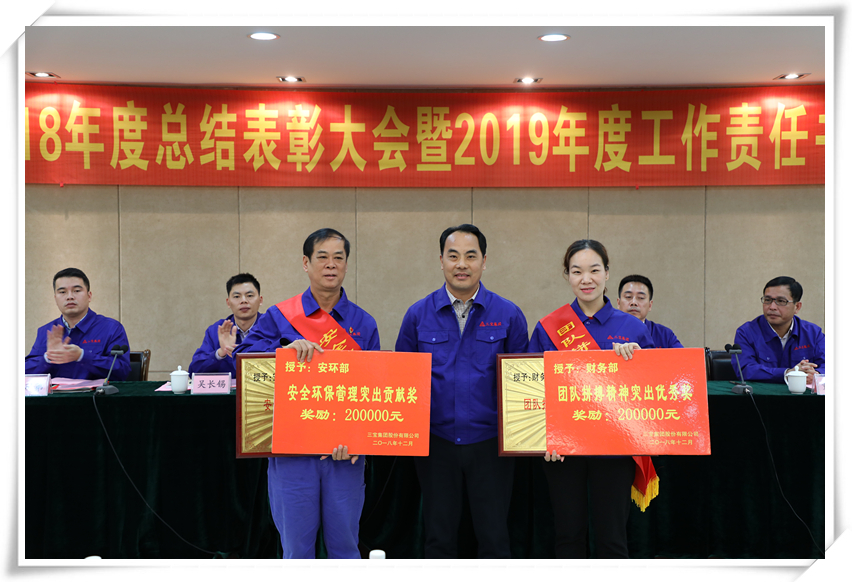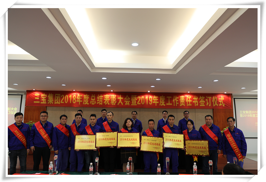 隨后,蘇副總宣布《三寶集團(tuán)2018年先進(jìn)單位及個(gè)人的表彰決定》把此次會(huì)議氣氛推向高潮。年度表彰,是三寶集團(tuán)的傳統(tǒng),意在通過(guò)表彰優(yōu)秀,激發(fā)更大的工作熱情,創(chuàng)造更大效益,通過(guò)這項(xiàng)激勵(lì)舉措,也實(shí)實(shí)在在的營(yíng)造出了爭(zhēng)先創(chuàng)優(yōu)的工作氛圍。 2018年三寶集團(tuán)涌現(xiàn)出許多優(yōu)秀的個(gè)人和團(tuán)隊(duì),經(jīng)公司高層最后“優(yōu)中選優(yōu)”的評(píng)議,分別評(píng)選出優(yōu)秀團(tuán)隊(duì)獎(jiǎng)2 個(gè);總經(jīng)理特別獎(jiǎng)9名;基層勞模29名;先進(jìn)班組19個(gè);優(yōu)秀項(xiàng)目建設(shè)獎(jiǎng)1項(xiàng);技術(shù)創(chuàng)新獎(jiǎng)2項(xiàng)、管理創(chuàng)新獎(jiǎng)2項(xiàng);技術(shù)應(yīng)用獎(jiǎng)6項(xiàng)。感謝每一位員工的辛勤付出,無(wú)悔付出,榮耀加冕,譜寫(xiě)出一曲“你追我趕,相互促進(jìn)”的新時(shí)代贊歌。