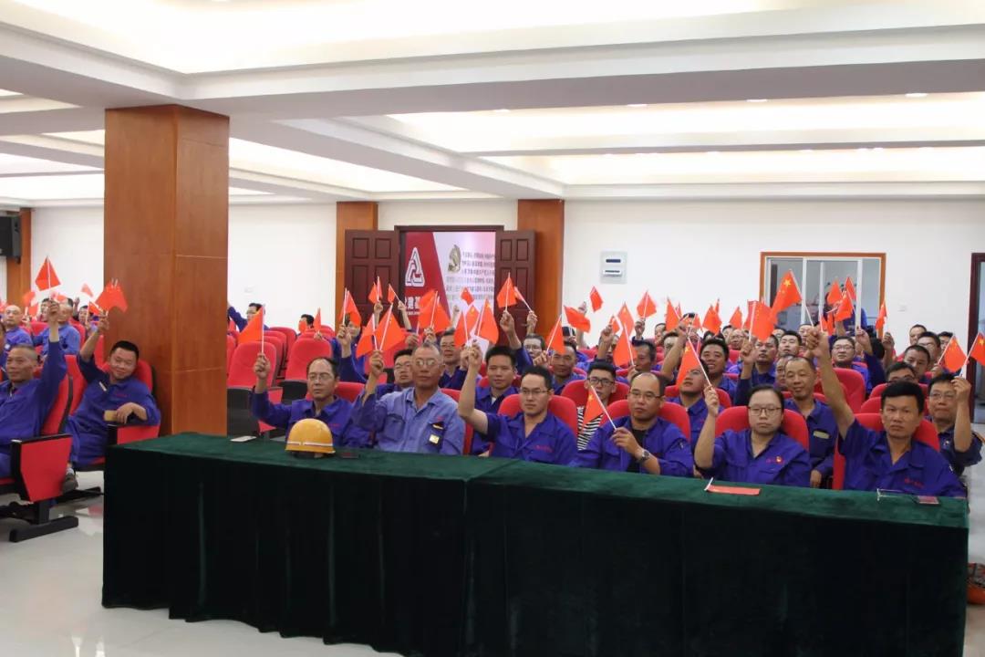 2019年10月1日上午,三寶集團(tuán)中高層領(lǐng)導(dǎo)、全體黨員、各部門各分廠員工代表共300余人在升旗臺前隆重集會,由黨委書記林軍主持,舉行迎國慶升國旗儀式。