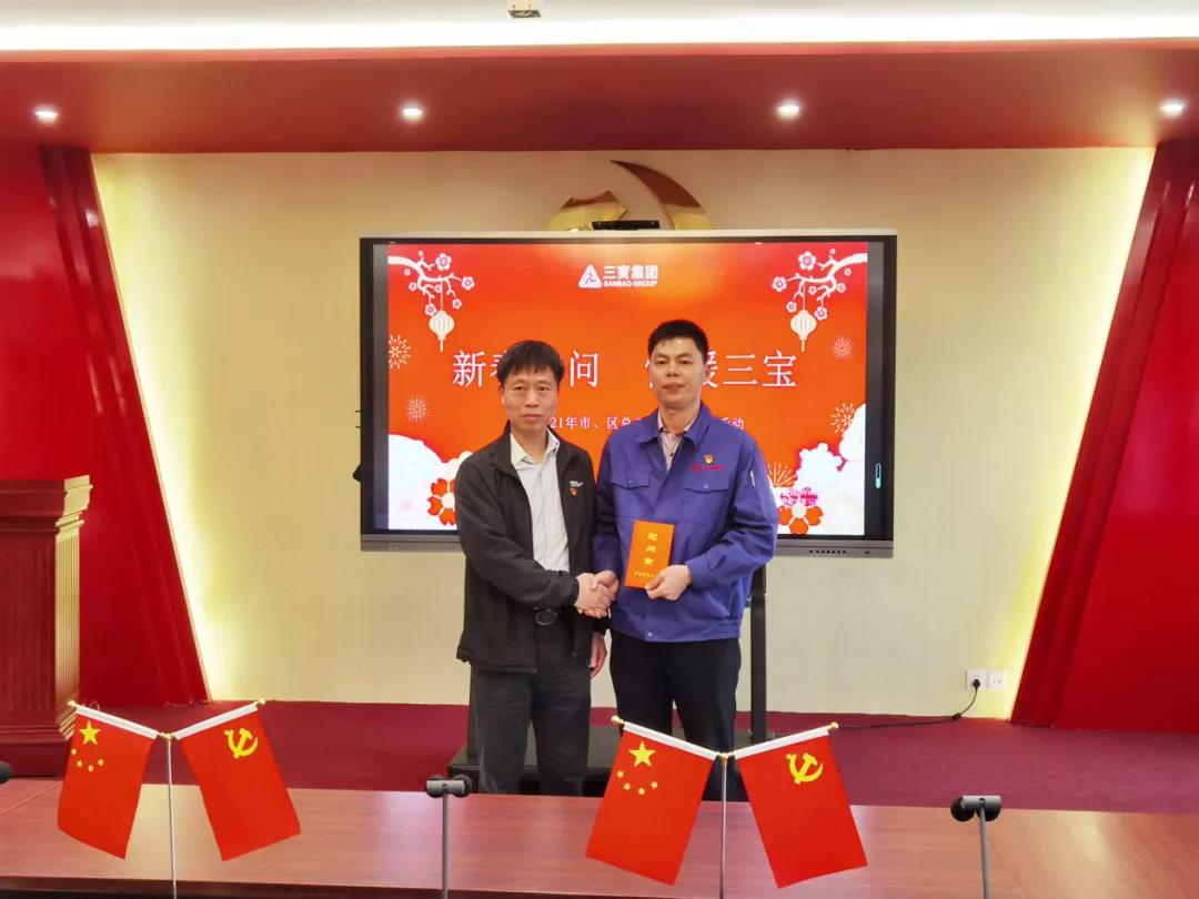 2月2日-3日,漳州市總工會(huì)常務(wù)副主席張哲青、副主席曾景賢偕同中共漳州市薌城區(qū)委二級調(diào)研員、薌城區(qū)計(jì)生協(xié)會(huì)長、三寶綜合服務(wù)協(xié)調(diào)辦主任、三寶集團(tuán)黨委第一書記廖文彬,薌城區(qū)總工會(huì)常務(wù)副主席李泊生,薌城區(qū)計(jì)生協(xié)會(huì)常務(wù)專職副會(huì)長宋冰津前往三寶集團(tuán)開展新春送溫暖活動(dòng),三寶集團(tuán)副總經(jīng)理蘇敬法,三寶集團(tuán)黨委書記、集團(tuán)計(jì)生協(xié)會(huì)長林軍,集團(tuán)工會(huì)主席、人力資源部經(jīng)理、集團(tuán)計(jì)生協(xié)副會(huì)長湯勇華,集團(tuán)工會(huì)副主席、董事長辦公室副主任李鳳蓮陪同,為35名困難職工送去了親切關(guān)懷和新春祝福,并送上慰問金和年貨,祝愿他們過一個(gè)歡樂、安定、祥和的春節(jié)。