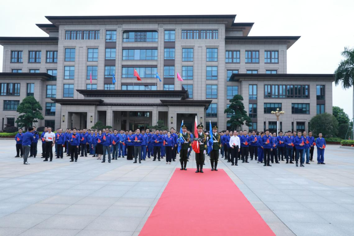 伴隨著雄壯的《義勇軍進(jìn)行曲》,鮮艷的五星紅旗冉冉升起,在場人員莊嚴(yán)肅立,面向國旗行注目禮,齊聲高唱國歌,為偉大祖國送上深情祝福。