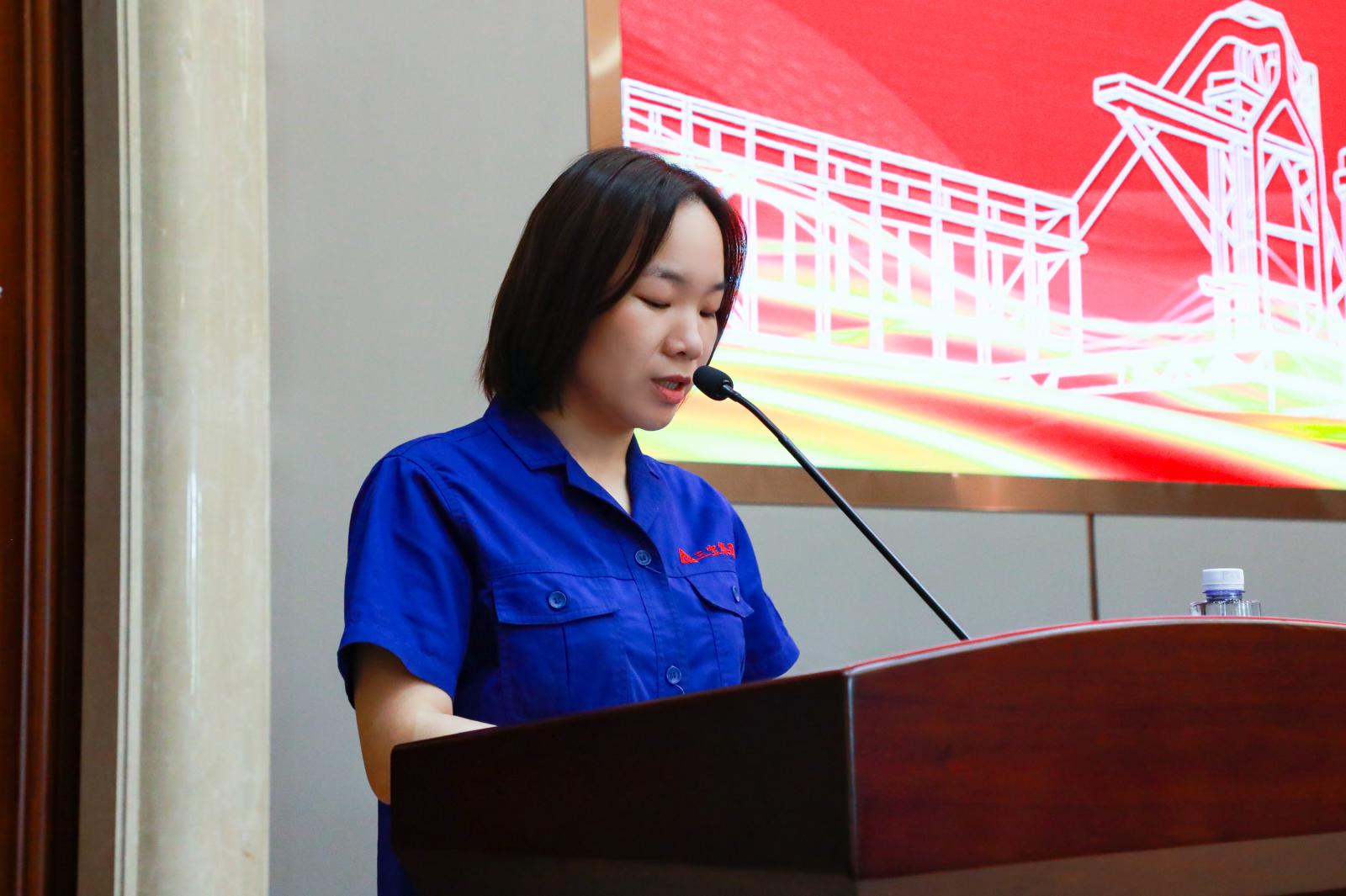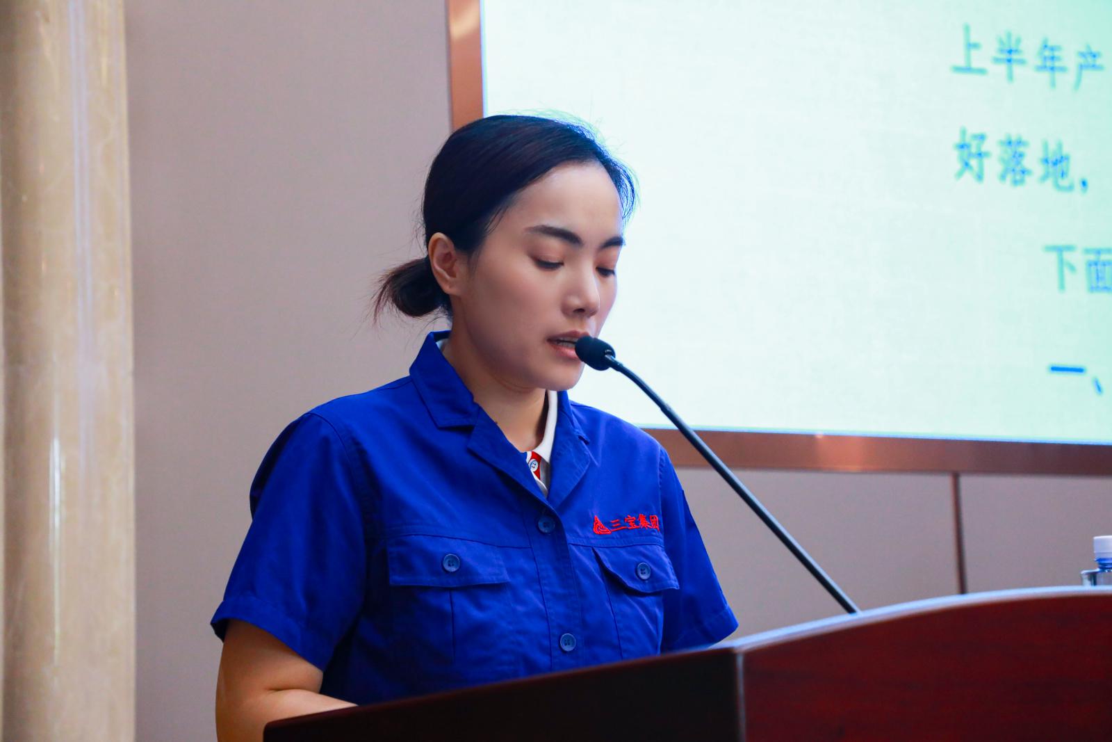 圖為財(cái)務(wù)部經(jīng)理蘭秀芳作2021上半年度“從嚴(yán)治本”完成情況匯報(bào)