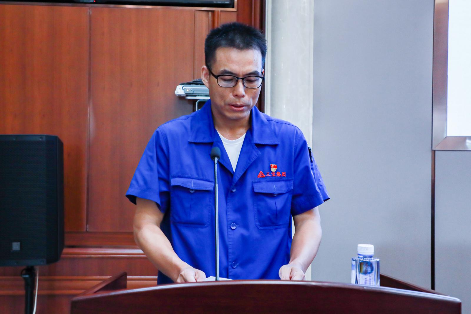 圖為熱卷廠廠長(zhǎng)張子彥作安全環(huán)保管理標(biāo)兵經(jīng)驗(yàn)分享