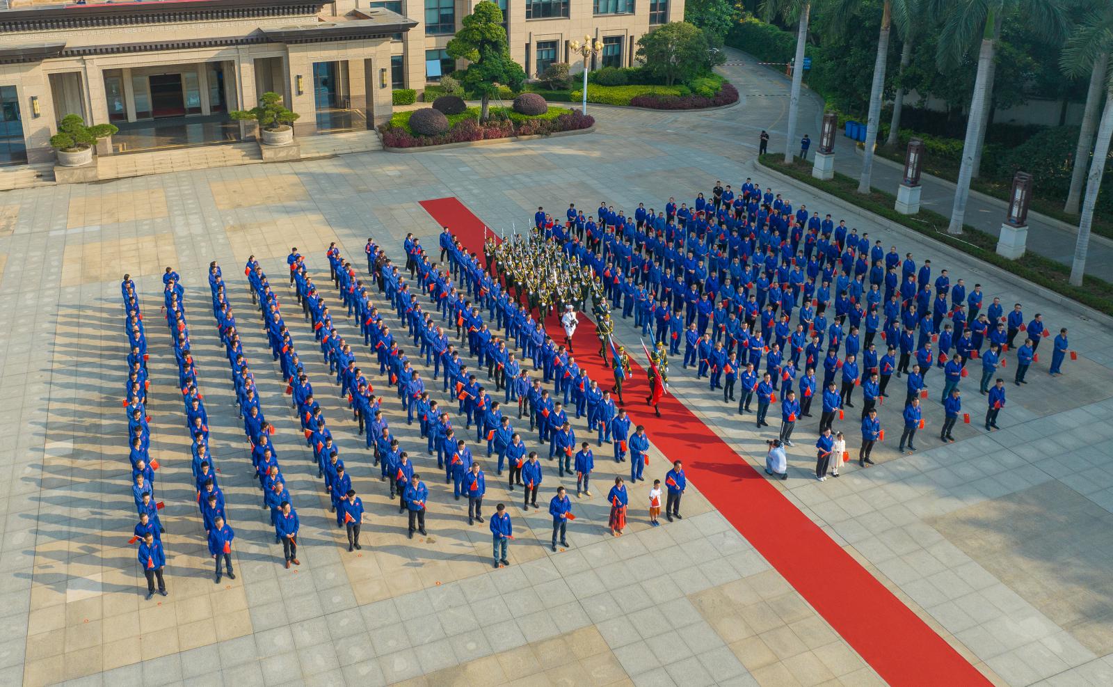 同日上午9時(shí),在三寶廣場(chǎng)也舉行了莊嚴(yán)的升國(guó)旗儀式,董事長(zhǎng)王光文帶領(lǐng)集團(tuán)高層領(lǐng)導(dǎo)參加了升旗儀式。