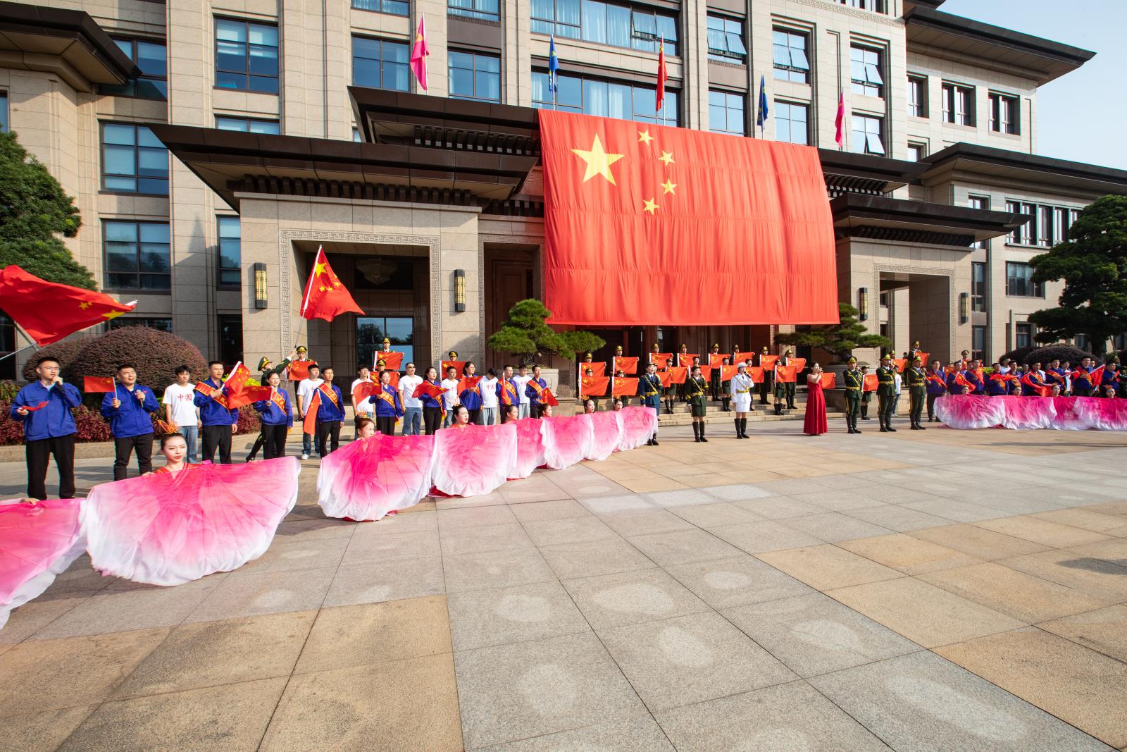 上午8時(shí),升旗儀式正式開始,伴隨著國(guó)旗護(hù)衛(wèi)隊(duì)雄壯的腳步和激昂的國(guó)歌聲,鮮艷的五星紅旗迎著旭日冉冉升起,大家面向國(guó)旗肅立行禮,向國(guó)旗致以最崇高的敬意。緊接著,伴隨著《我和我的祖國(guó)》悠揚(yáng)的小提琴聲音響起,國(guó)慶快閃活動(dòng)正式拉開序幕。三寶各單位代表揮舞著小國(guó)旗,和演員們一起唱響《大中國(guó)》《咱們工人有力量》《紅旗飄飄》,聚集在行政樓廣場(chǎng)的大國(guó)旗下,場(chǎng)上氣氛熱烈、紅旗招展,匯聚起磅礴奮進(jìn)力量,全場(chǎng)大合唱《歌唱祖國(guó)》把活動(dòng)推向高潮,唱出了三寶人對(duì)祖國(guó)的禮贊。