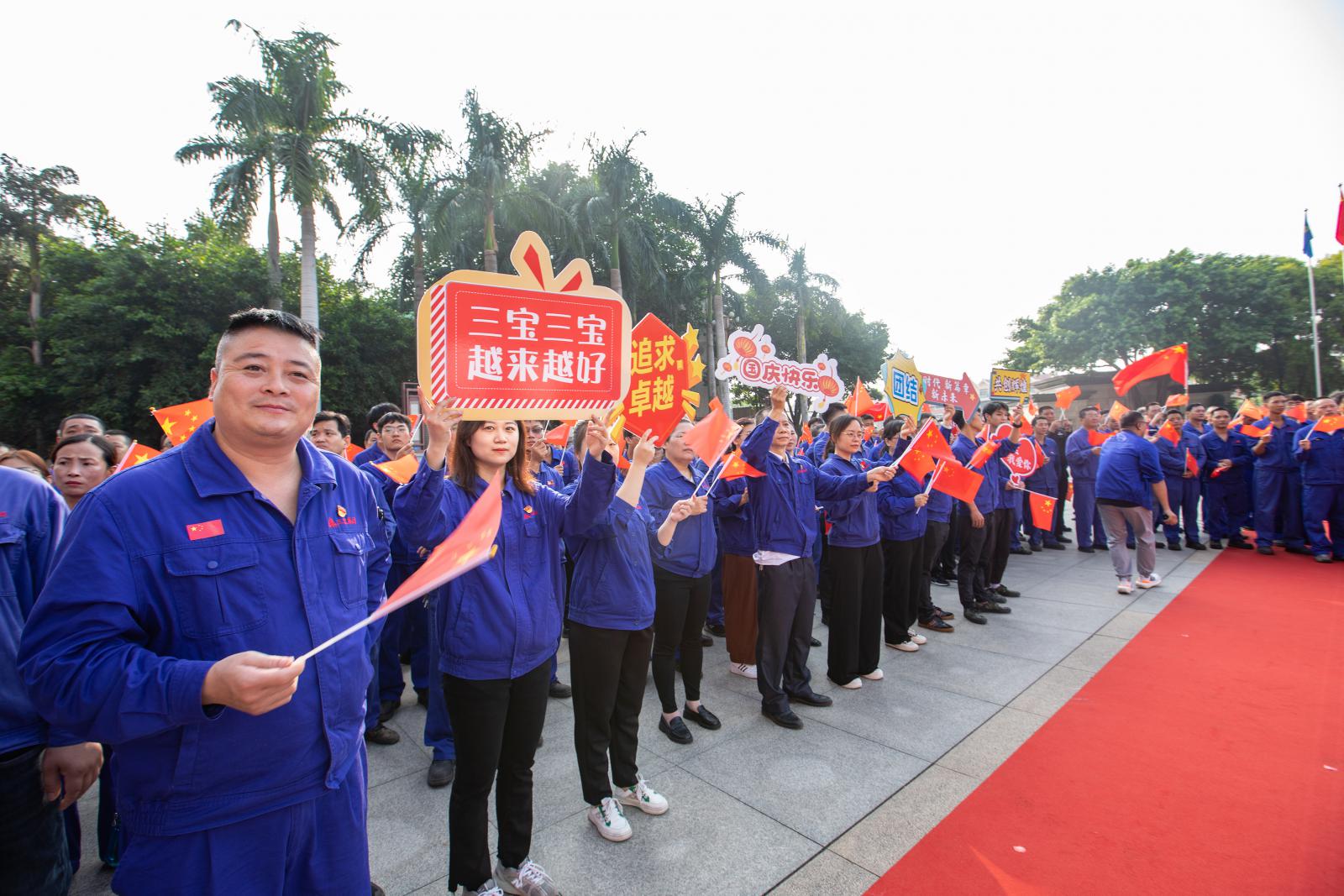 最后,在集團(tuán)董事長(zhǎng)王光文的帶領(lǐng)下,“中國(guó)中國(guó)、我愛你!”“三寶三寶、越來越好!”的祝福聲響徹廣場(chǎng)。國(guó)慶升旗儀式和快閃活動(dòng)賦能三寶發(fā)展越來越強(qiáng),展現(xiàn)了三寶人“團(tuán)結(jié)拼搏、追求卓越”的精神風(fēng)貌,表達(dá)了愛黨愛國(guó)愛廠的高漲熱情。