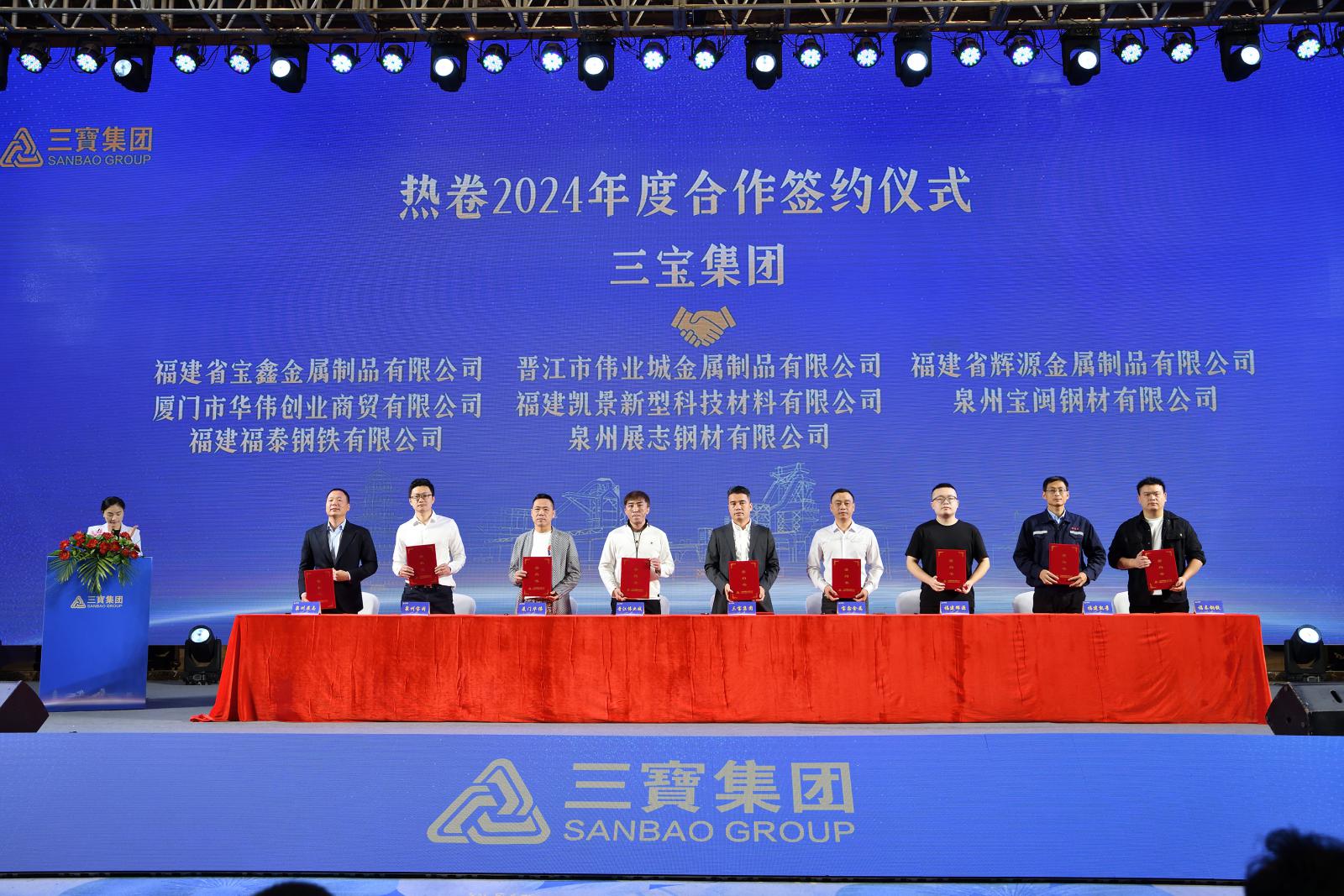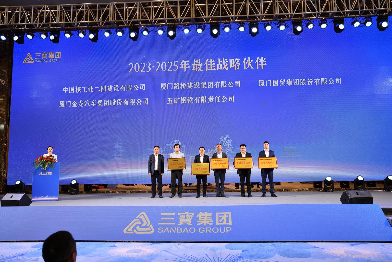在熱烈的掌聲中,三寶集團領(lǐng)導分別為最佳戰(zhàn)略伙伴,優(yōu)質(zhì)經(jīng)銷商、供應(yīng)商,優(yōu)秀合作伙伴頒獎,并舉行2023-2025年戰(zhàn)略合作協(xié)議、2024年度廠商合作協(xié)議簽約儀式。