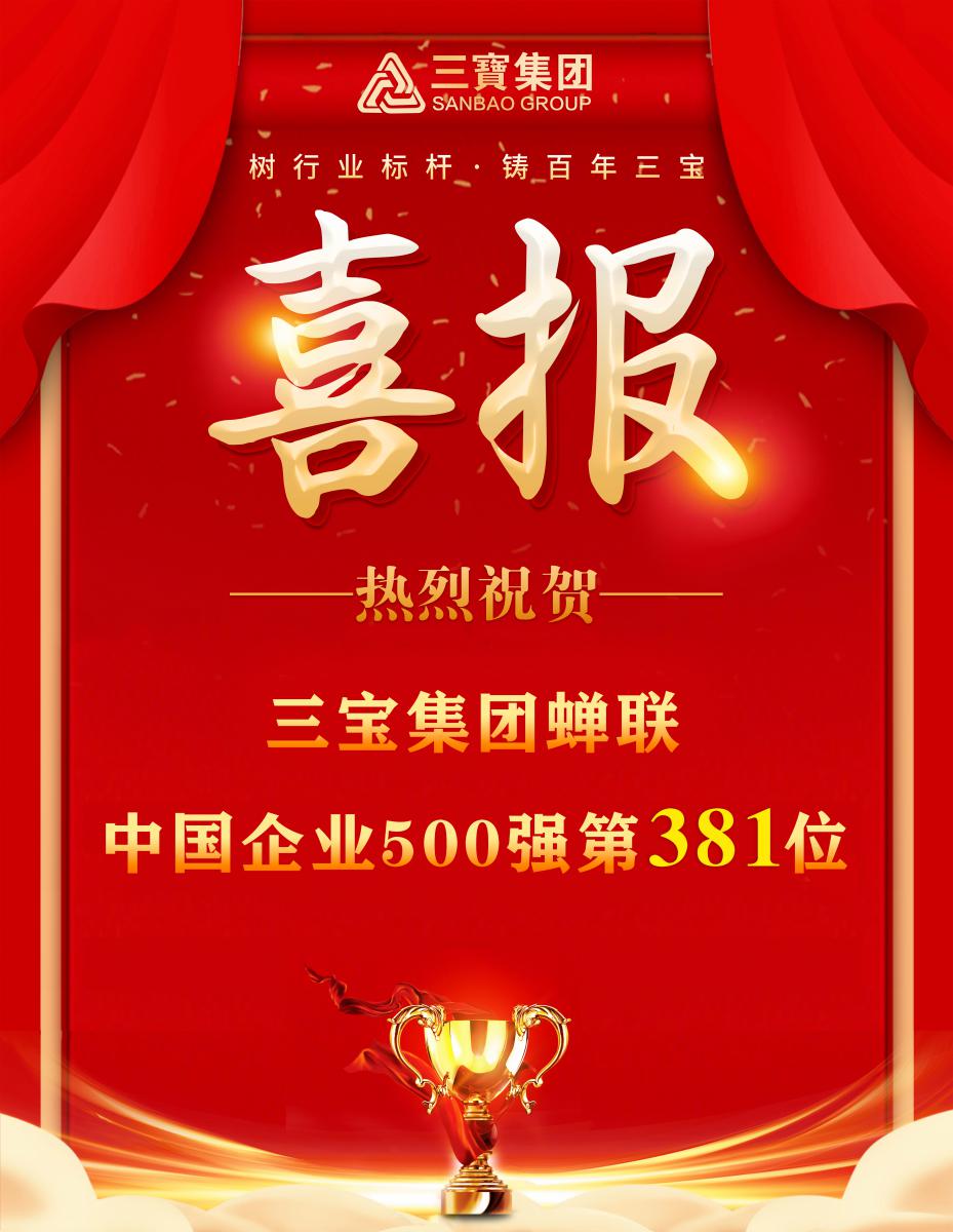 9月15日,中國企業(yè)聯(lián)合會、中國企業(yè)家協(xié)會發(fā)布“2025中國企業(yè)500強”榜單,三寶集團蟬聯(lián)“中國企業(yè)500強”,位列第381位。