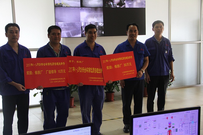 會(huì)上,公司董事長(zhǎng)兼總經(jīng)理王光文,對(duì)公司今年1-9月份各單位安全環(huán)保工作的提升給予肯定,尤其對(duì)煉鐵廠1-9月份安全環(huán)保管理工作的顯著提高給予表彰,并頒發(fā)獎(jiǎng)牌和獎(jiǎng)金,授予:煉鐵廠 “2017年1-9月份安全環(huán)保優(yōu)質(zhì)管理先鋒號(hào)”,對(duì)煉鐵廠廠級(jí)領(lǐng)導(dǎo)獎(jiǎng)勵(lì)10萬元、獎(jiǎng)勵(lì)分廠30萬元。