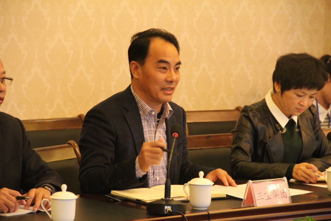 現(xiàn)場考察后,區(qū)領導及相關負責人與三寶集團董事長召開座談會。
