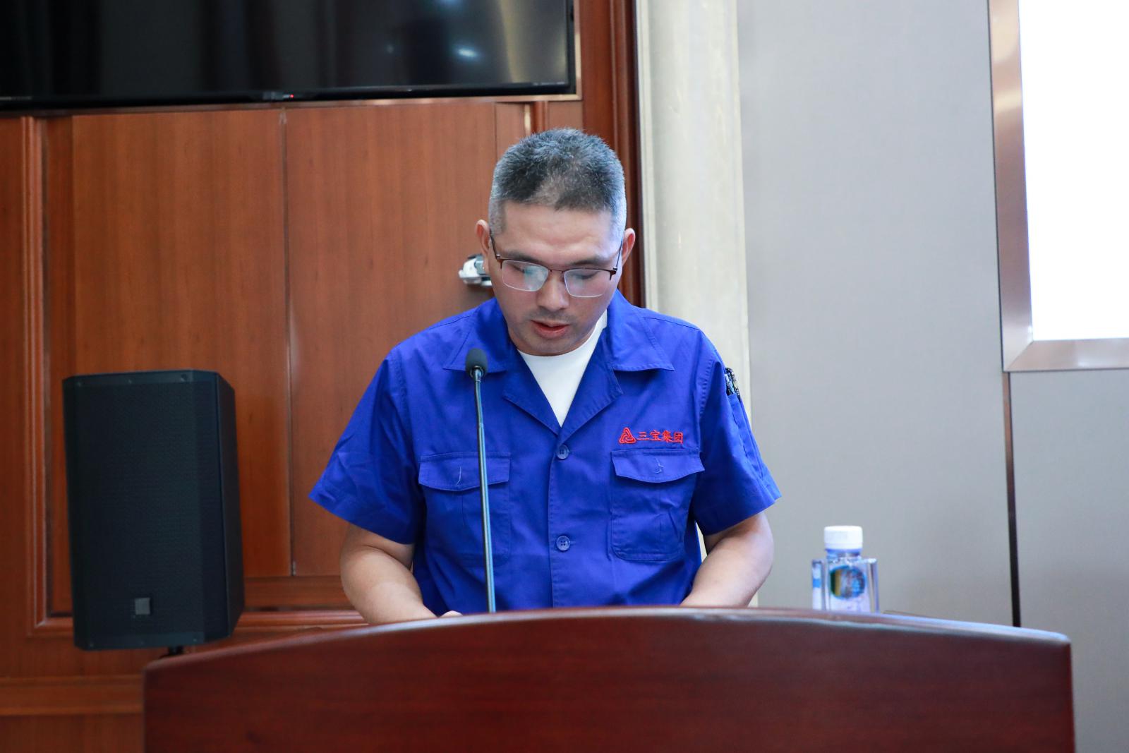 圖為熱卷廠廠長(zhǎng)張子彥作安全環(huán)保管理標(biāo)兵經(jīng)驗(yàn)分享