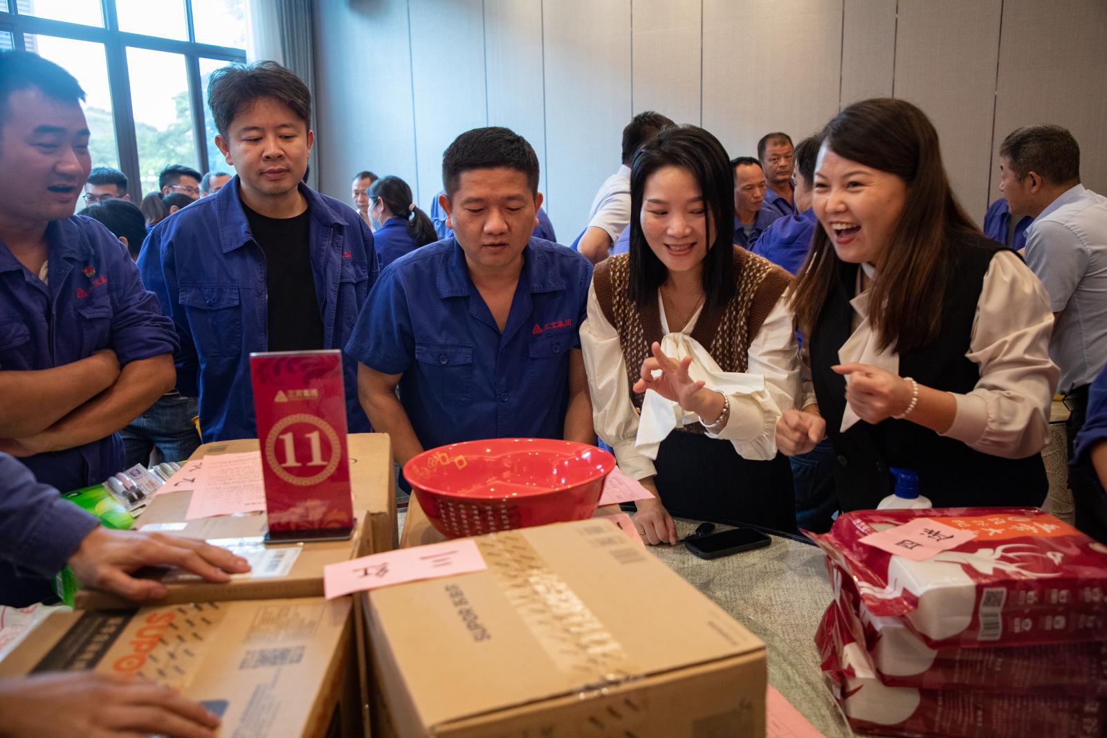 博餅是閩南人幾百年來(lái)獨(dú)有的中秋傳統(tǒng)活動(dòng)。隨著骰子投入碗中清脆的聲響,集團(tuán)博餅活動(dòng)正式拉開序幕。笑聲和骰子聲交錯(cuò)在一起,一名名幸運(yùn)者在歡呼聲中誕生,大家在三寶大家庭中感受到了幸福和快樂(lè)。