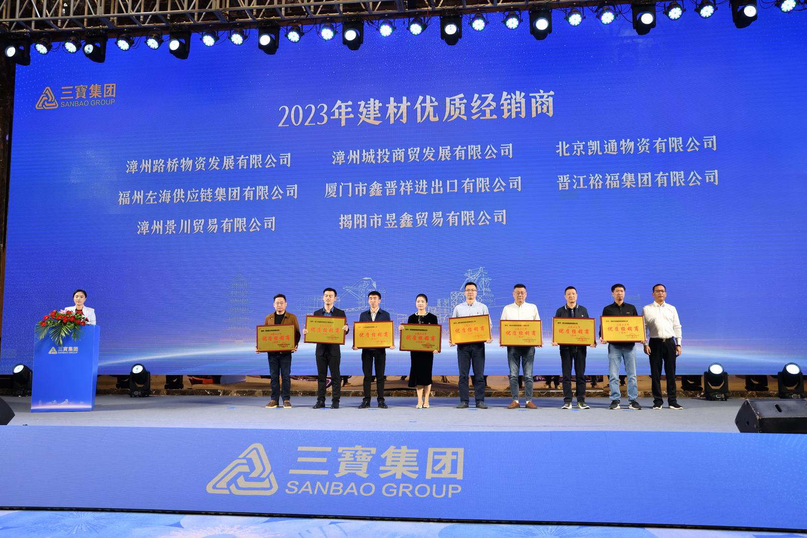 在熱烈的掌聲中,三寶集團領(lǐng)導分別為最佳戰(zhàn)略伙伴,優(yōu)質(zhì)經(jīng)銷商、供應(yīng)商,優(yōu)秀合作伙伴頒獎,并舉行2023-2025年戰(zhàn)略合作協(xié)議、2024年度廠商合作協(xié)議簽約儀式。