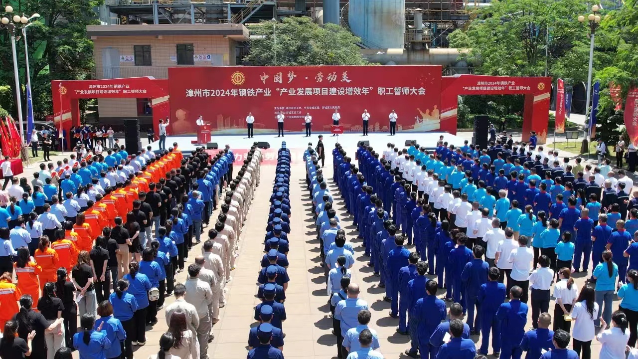 為大力弘揚勞模精神、勞動精神、工匠精神,展現(xiàn)漳州市鋼鐵產業(yè)職工隊伍的時代風采和使命擔當,扎實做好“穩(wěn)運行、防風險、提質量、優(yōu)結構、促轉型、增效益”工作,推進我市鋼鐵工業(yè)高質量發(fā)展,5月29日,由漳州市總工會、中共薌城區(qū)委、薌城區(qū)人民政府聯(lián)合主辦,薌城區(qū)總工會承辦,三寶集團股份有限公司協(xié)辦的漳州市2024年鋼鐵產業(yè)“產業(yè)發(fā)展項目建設增效年”職工誓師大會,在薌城區(qū)浦南鎮(zhèn)三寶集團股份有限公司廣場舉行。市人大常委會主任李東河,市委常委、秘書長、市總工會主席張鴻,市政府副市長林少金出席活動。