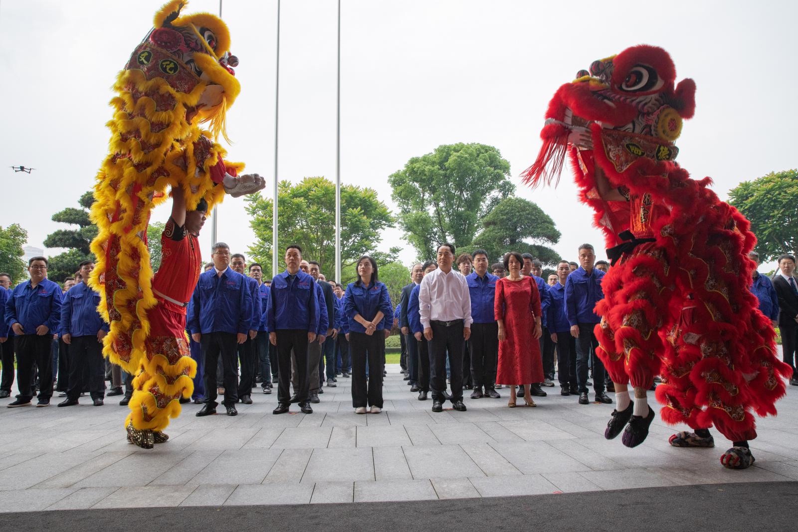 擂鼓震天,祥獅獻瑞。在精彩的舞獅表演結(jié)束后,董事長王光文先生與夫人蘇玉妹女士共同為新辦公樓揭幕,并宣布總部辦公樓正式喬遷。
