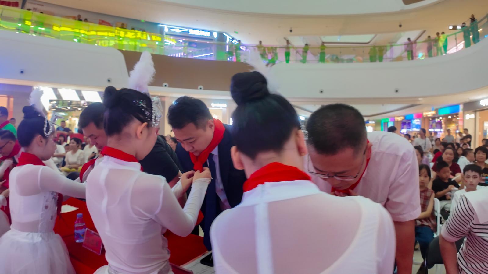 活動(dòng)伊始,少先隊(duì)員代表為領(lǐng)導(dǎo)們系上了鮮艷的紅領(lǐng)巾,以少年禮致以美好祝福!